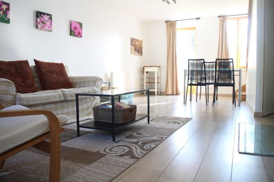Gîte avec une grande salle de séjour aux hauts plafonds